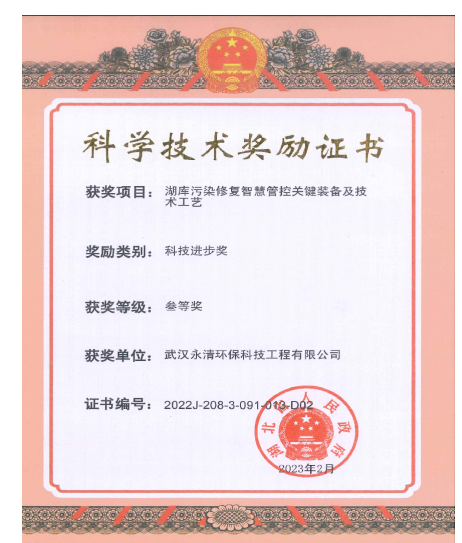 湖庫(kù)污染修復(fù)智慧管控關(guān)鍵裝備及技術(shù)工藝喜獲2022年湖北省科技進(jìn)步獎(jiǎng)